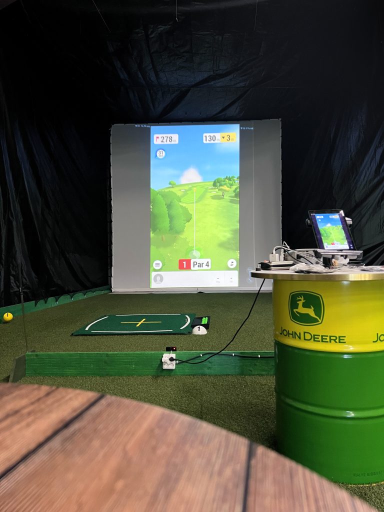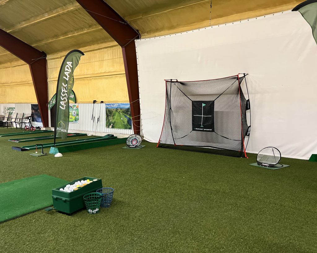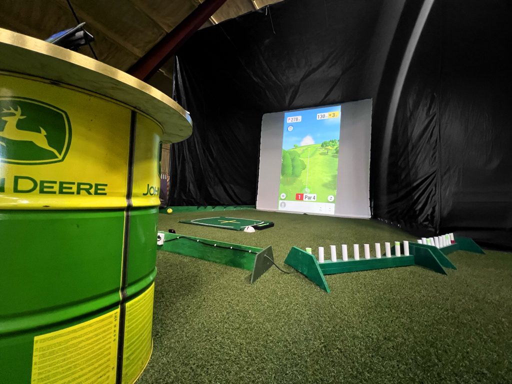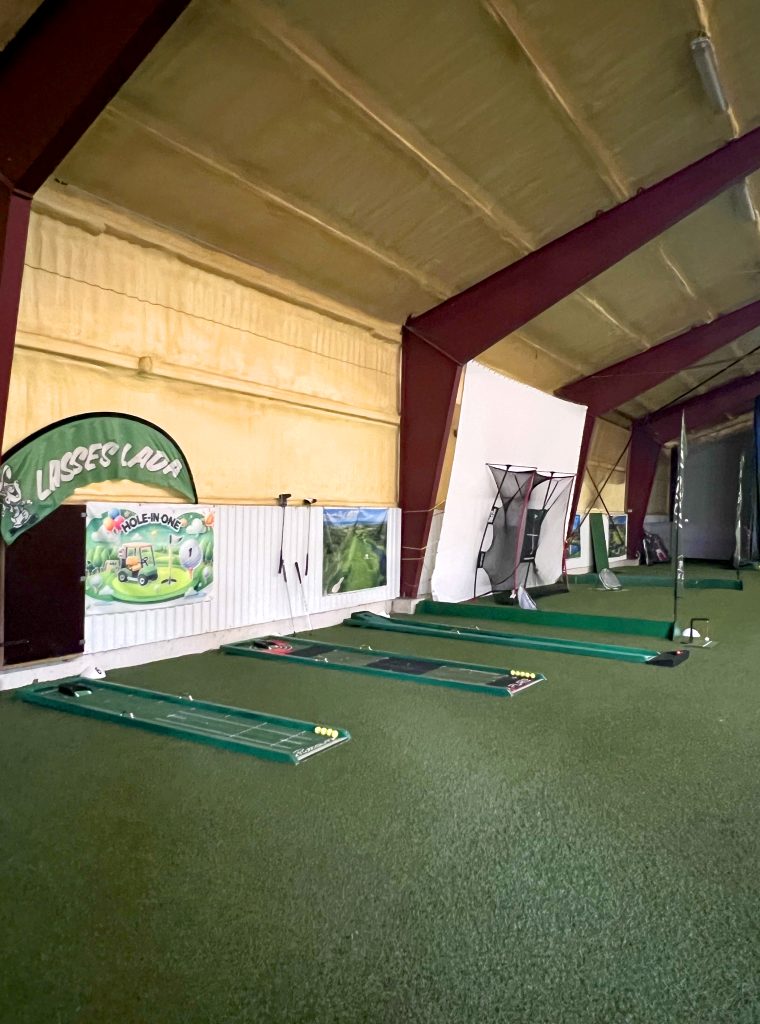 Konstgräs i hela hallen som ger en äkta och behaglig golfupplevelse.
